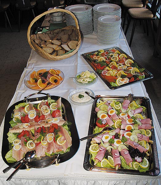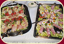 warmen und kalten Speisen sowie Getränke- und Personalservice.